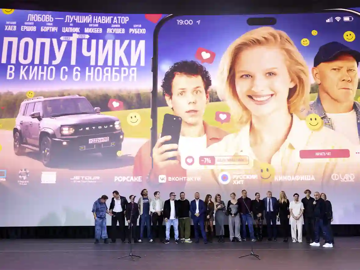 30 октября на Мосфильме прошел предпремьерный показ полнометражного фильма «Попутчики», официальным партнером которого выступает бренд JETOUR. На премьере собралось около 500 гостей, включая актеров, сыгравших в фильме – Ян Цапник, Данила Якушев, Евгений Михеев и другие. Широкий прокат «Попутчиков» начнется в кинотеатрах страны с 6 ноября 2025.